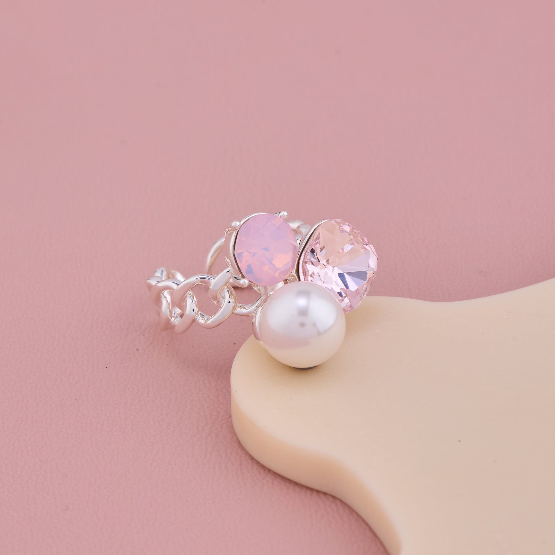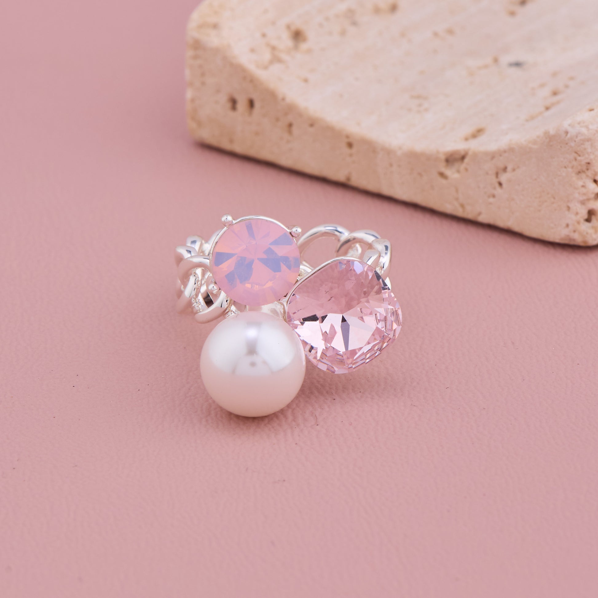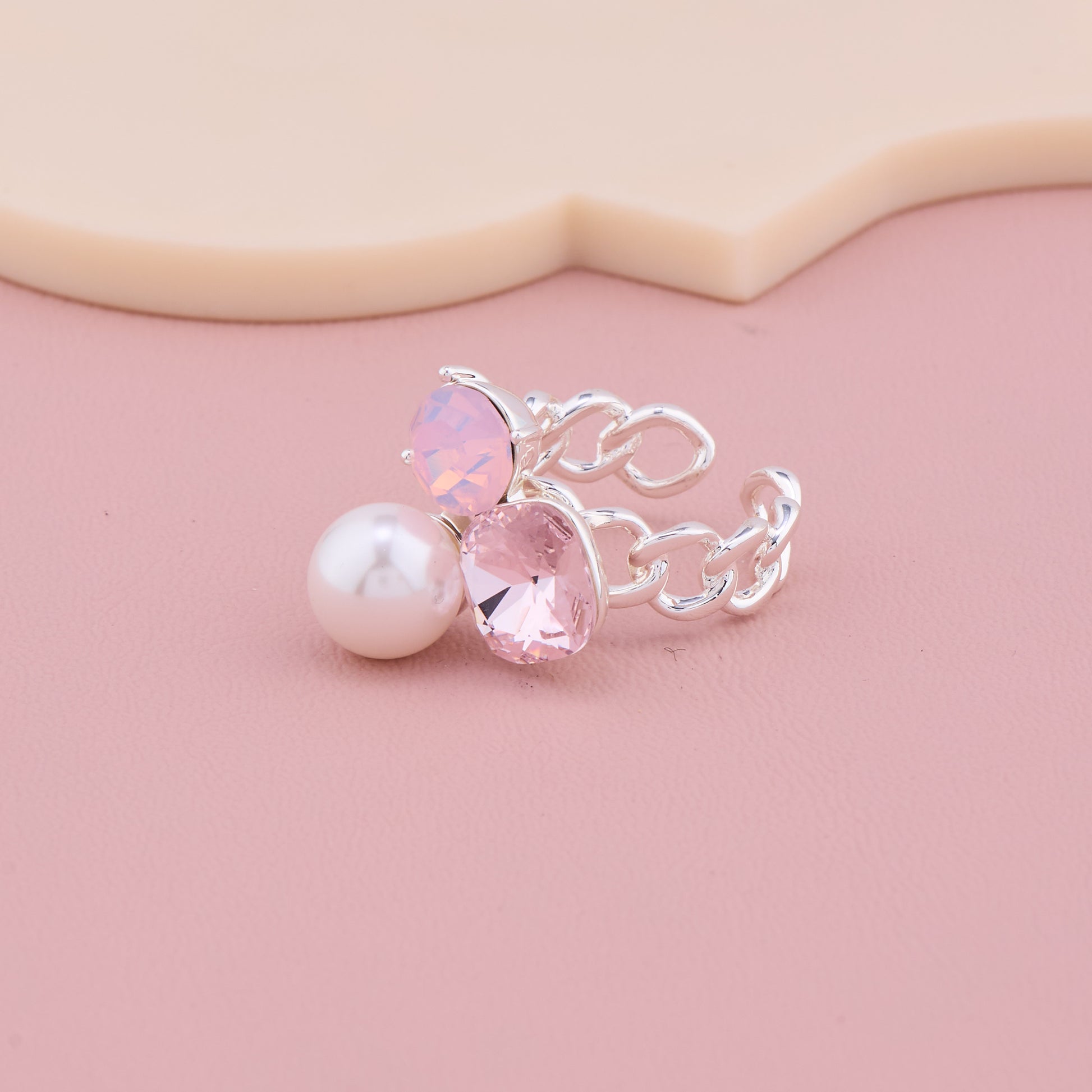 Pink Stone Pearl Silver Ring