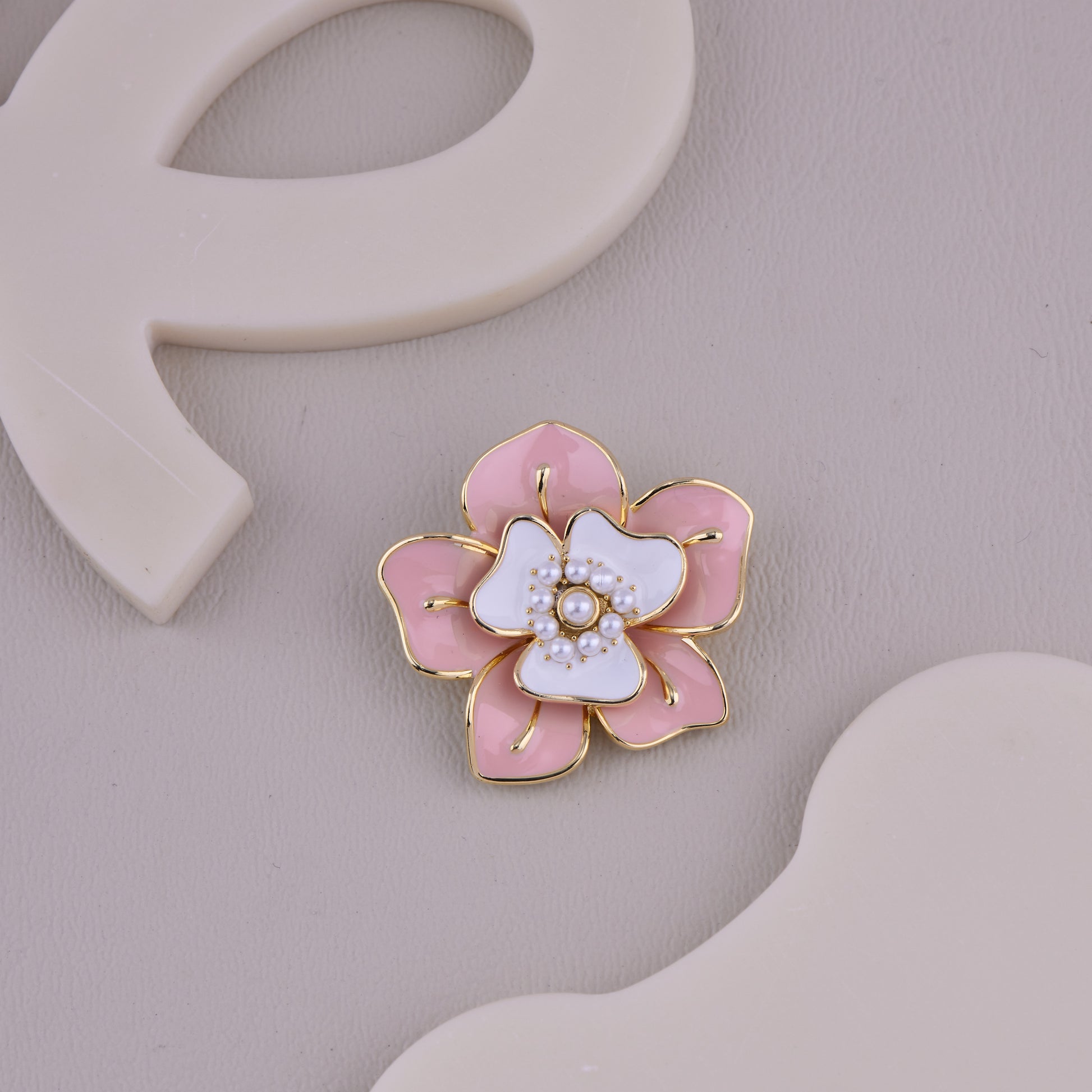 Pink & White Pearl Flower Brooch