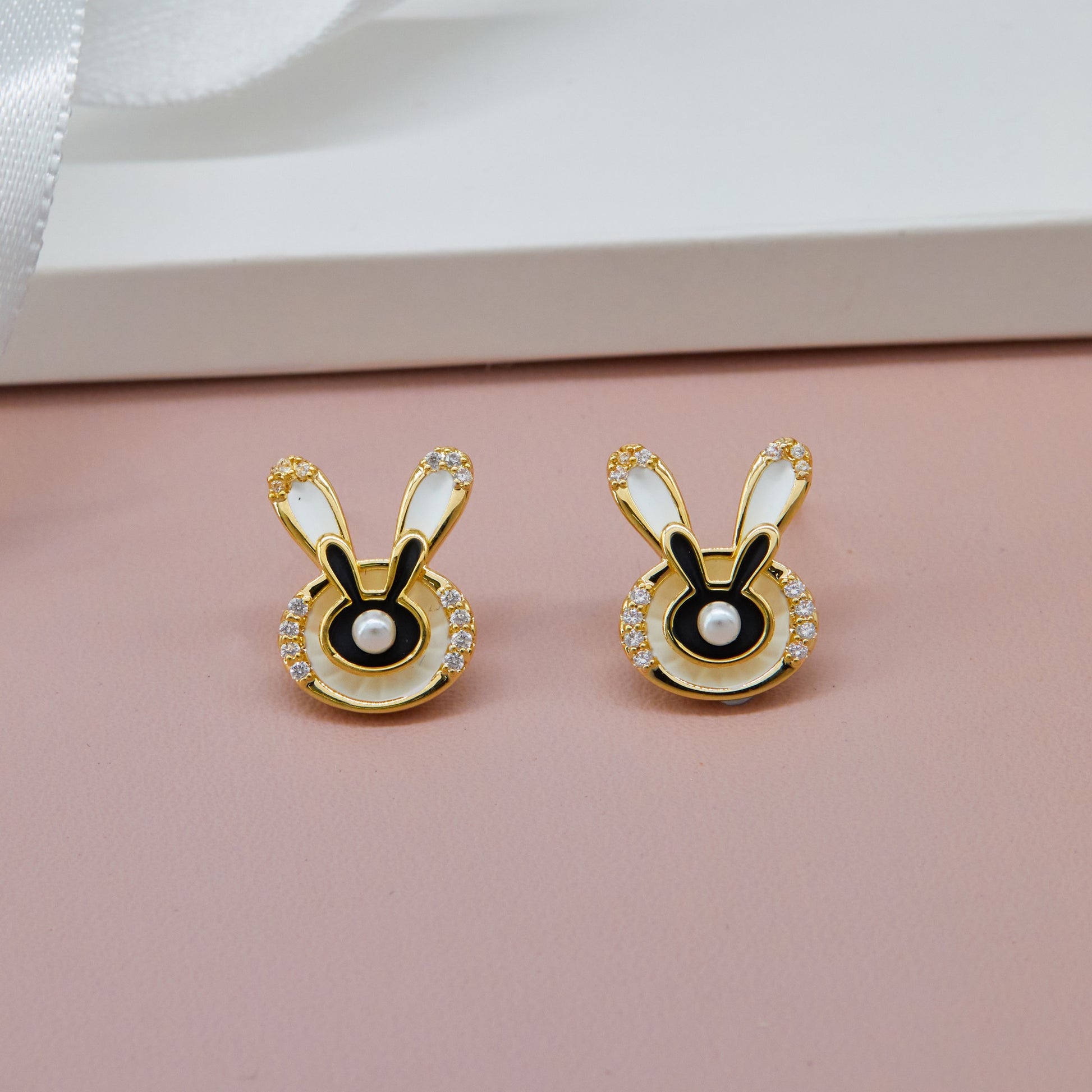 features a whimsical pair of earrings crafted to resemble rabbit ears, blending art and fashion into a unique accessory. Likely handmade, these creative earrings showcase individuality and charm, making them a playful yet stylish addition to any indoor outfit.
