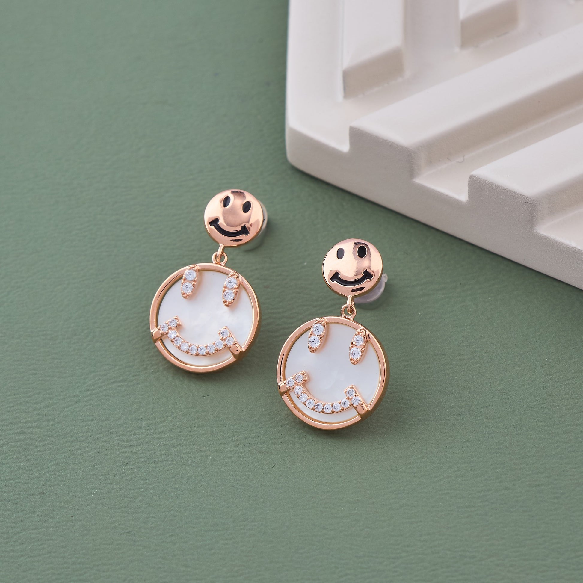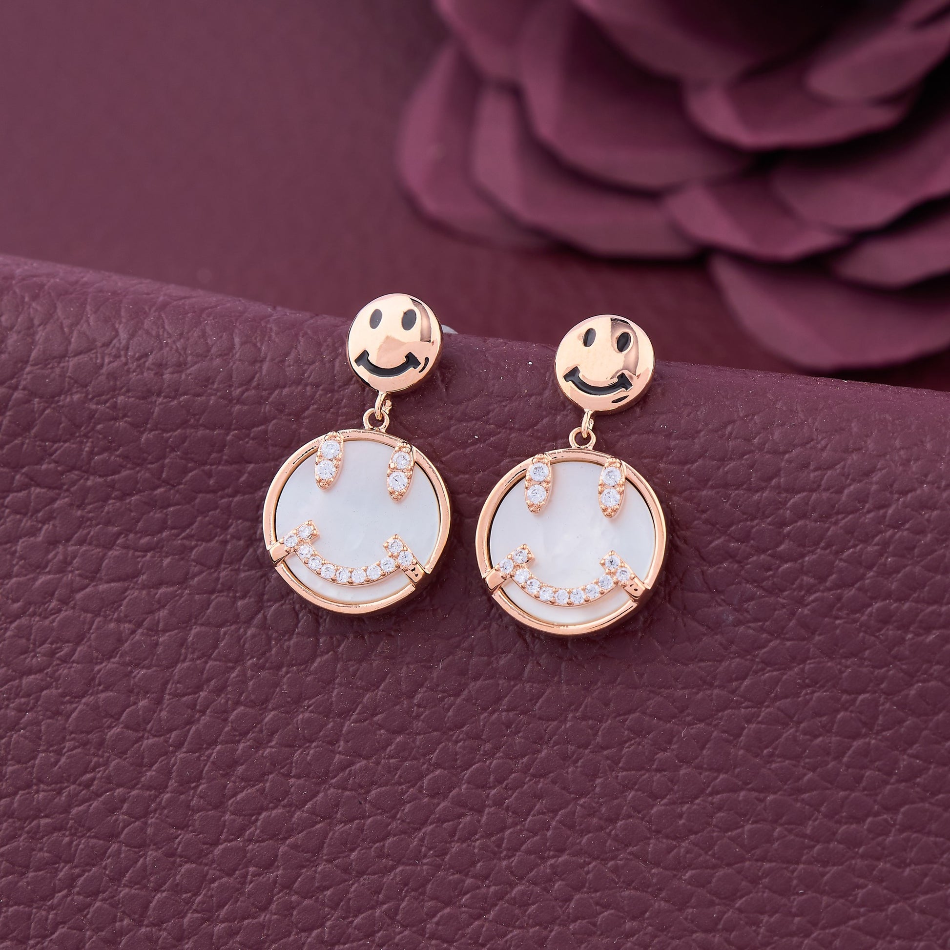Playful yet luxurious, these gold earrings feature charming smiley faces adorned with dazzling diamonds. The cheerful design brings a touch of whimsy to high-fashion jewelry, making them the perfect accessory to brighten up any outfit. Their sparkling details and unique character exude confidence and joy in every glance.
