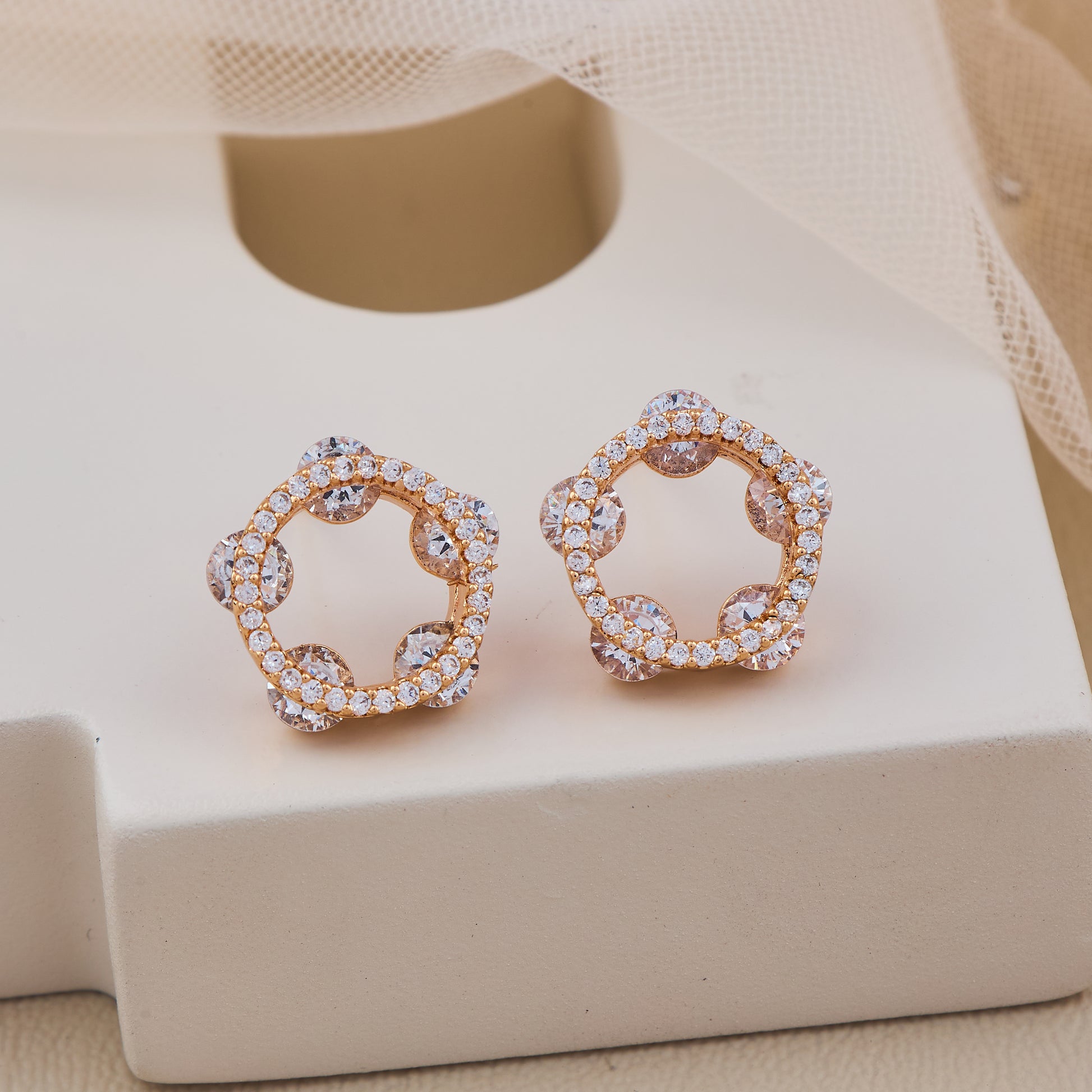 Rose Gold Circular Earrings with Diamond-Studded Detailing