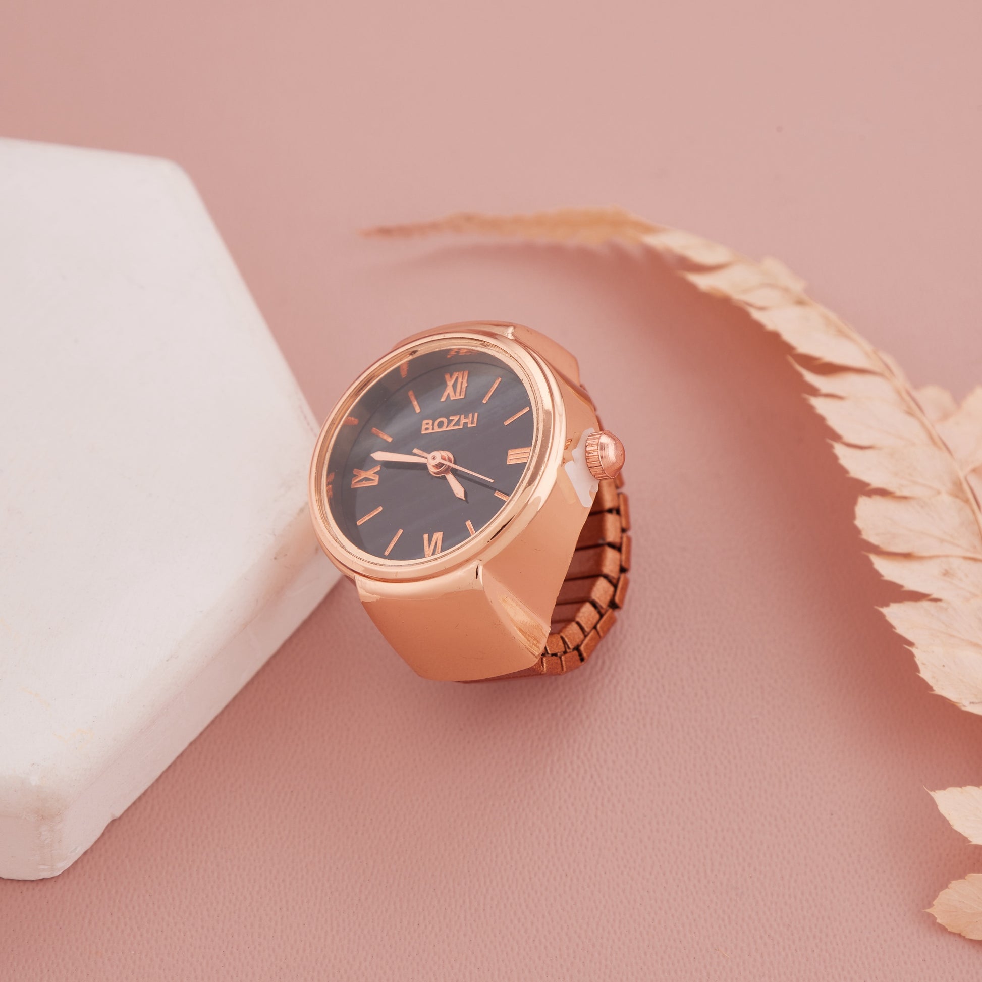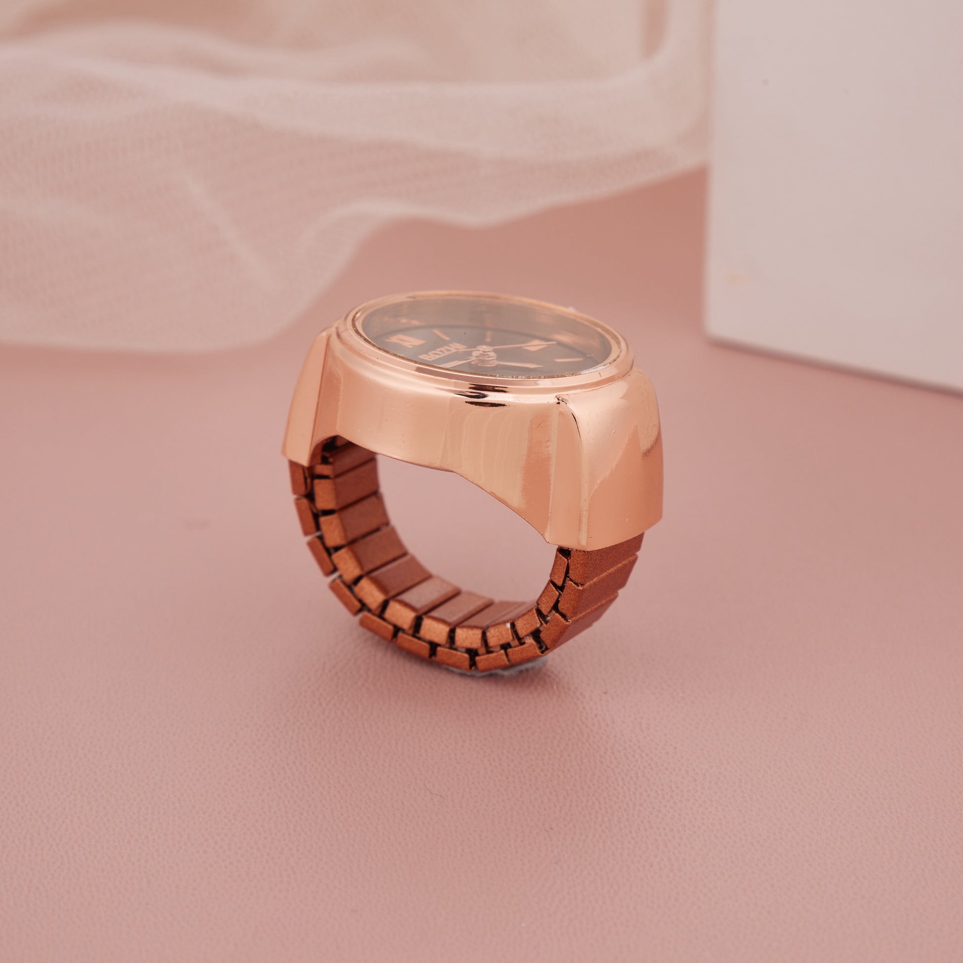 - Compact and adjustable ring-style watch