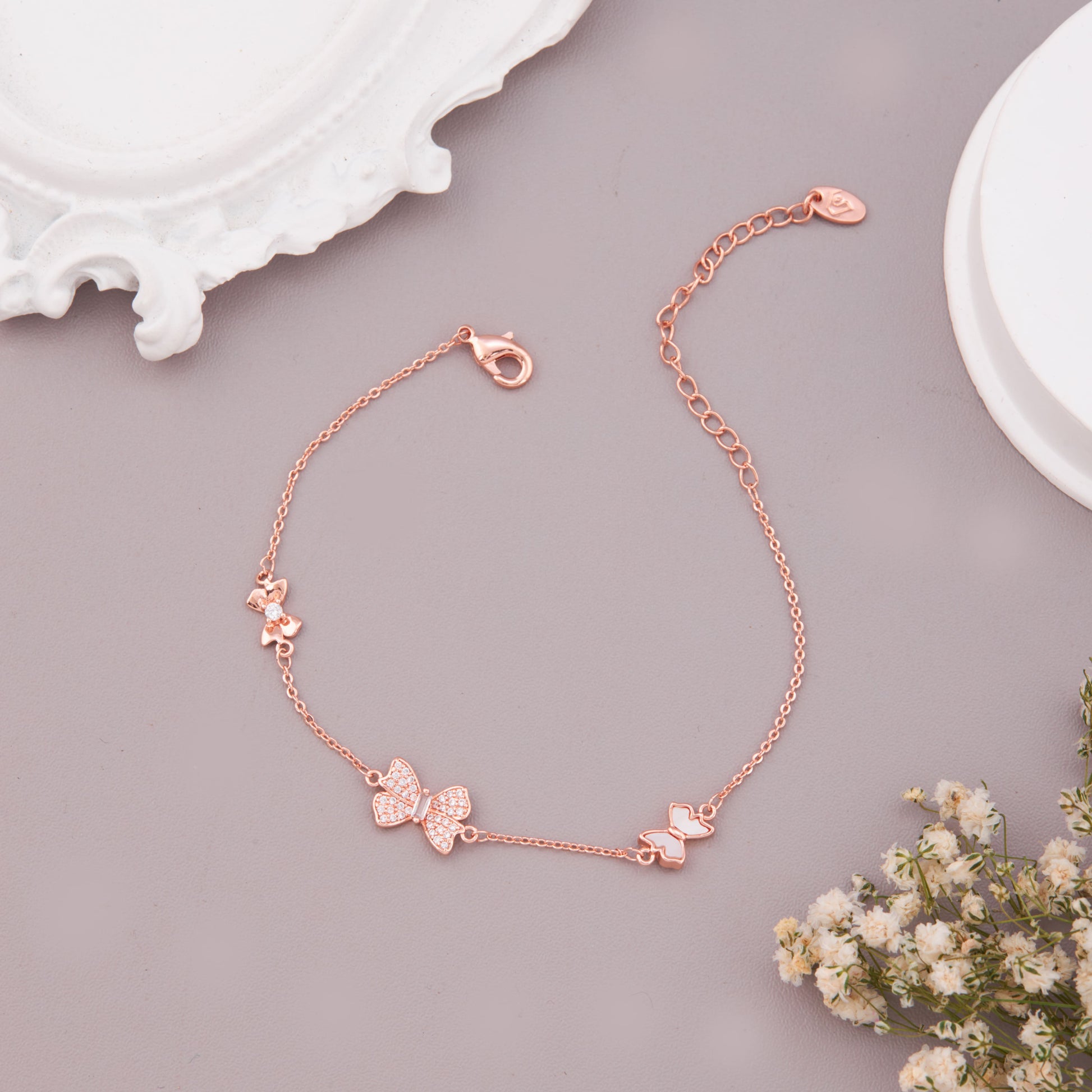 - Color: Rose gold-toned With Butterfly Charms