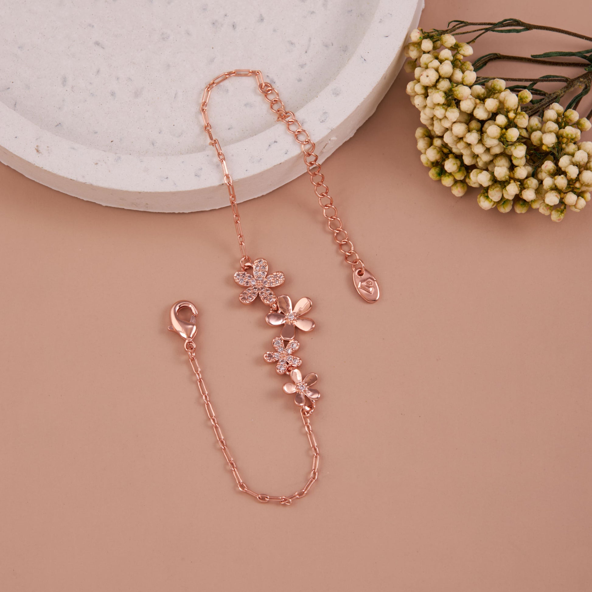 Elegant rose gold wraparound bracelet made from stainless steel and embellished with sparkling American Diamonds. A timeless piece designed by GC Premium Jewellery for modern Indian fashion.