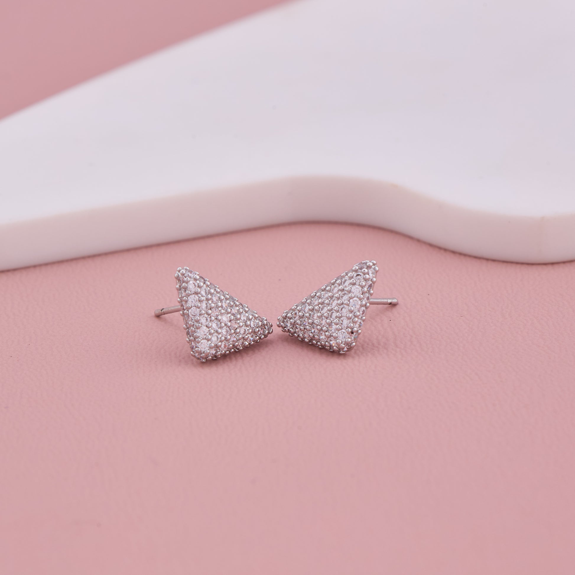 Silver Triangle Crystal Stud Earrings