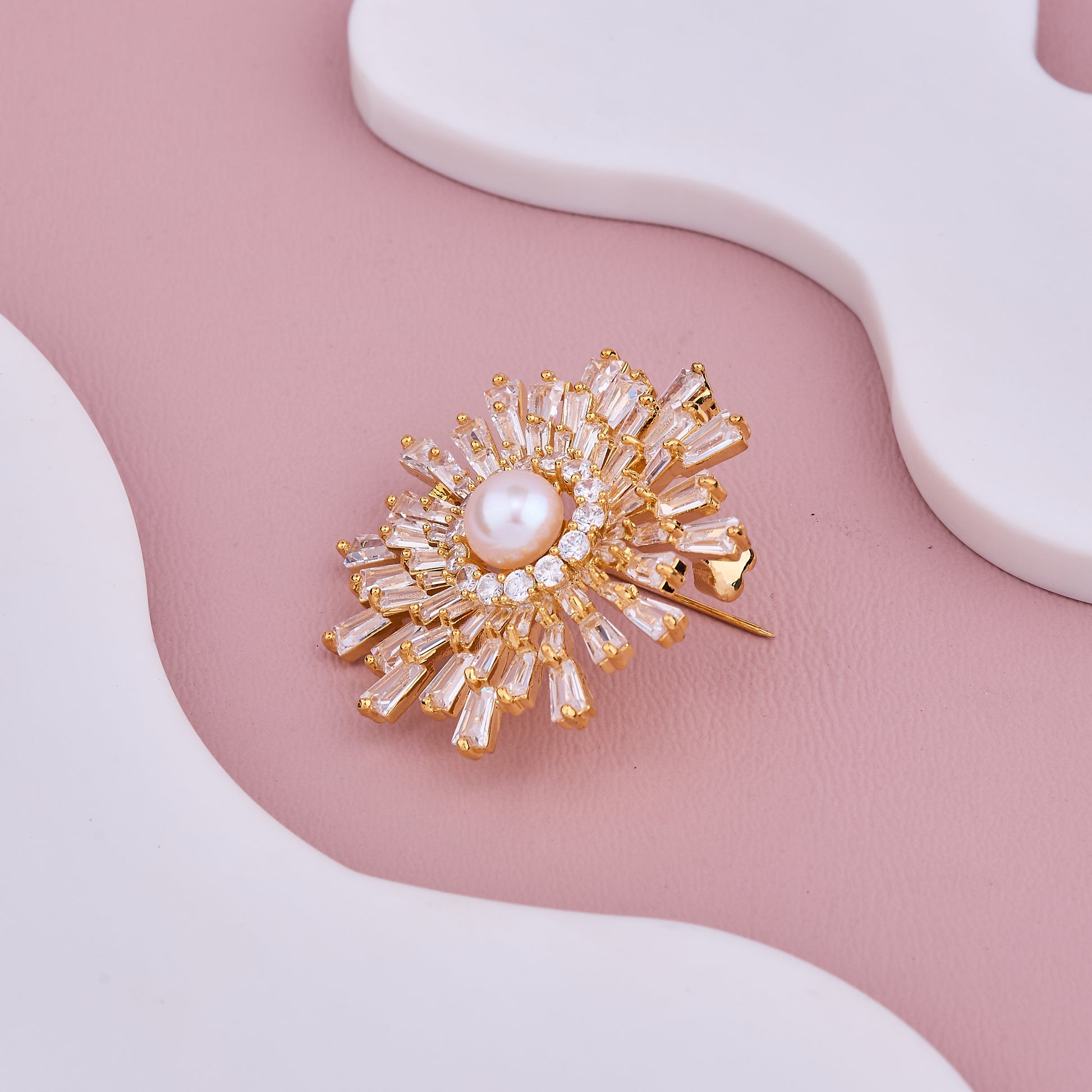 Inspired by the beauty of winter, this Crystal Snowflake Brooch by GC Premium Jewellery sparkles with dazzling stones set in a radiant gold-tone finish. Delicately crafted to capture the magic of falling snow, this timeless piece is perfect for adding a festive shimmer to sarees, jackets, scarves, or gowns. A charming accessory for seasonal styling or gifting.