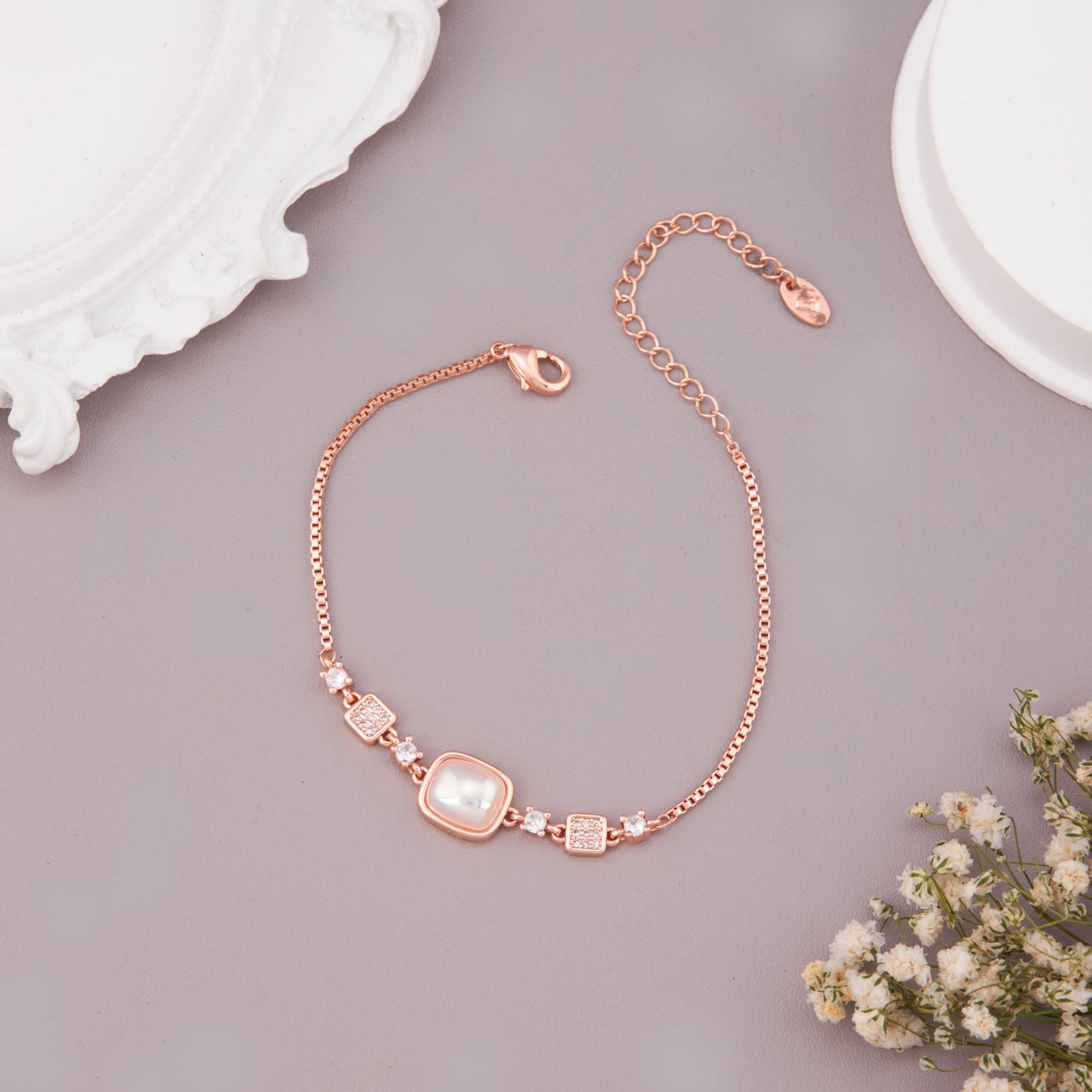 Stainless Steel Rose Gold-Plated AD Studded Floral Wraparound Bracelet