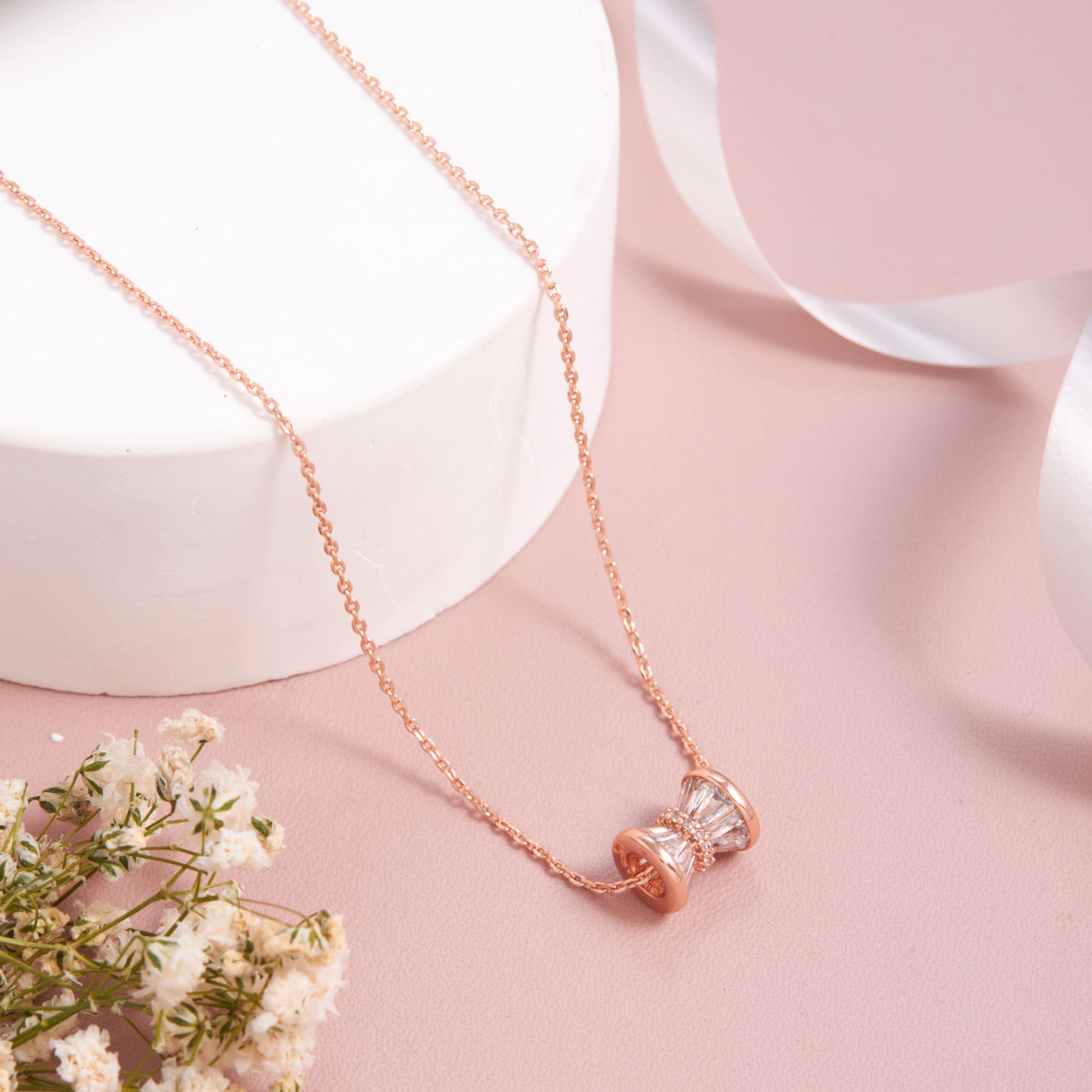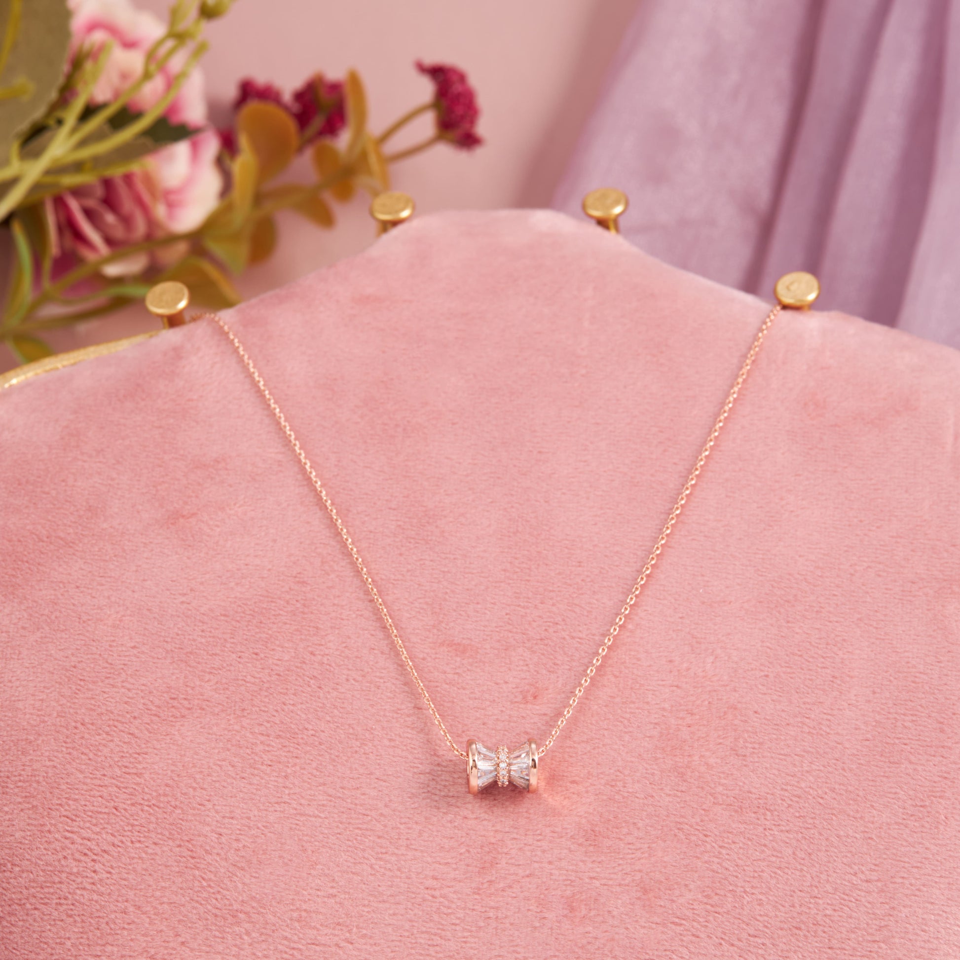 Add a delicate touch of elegance to your look with the Timeless Rose Gold Hourglass Pendant Necklace by GC Premium Jewellery. Featuring an hourglass-inspired charm with sparkling baguette-cut American Diamonds, this necklace symbolizes grace through time. The soft rose gold chain and sleek design make it perfect for everyday glamour or thoughtful gifting. Whether styled solo or layered, it’s a modern classic with a romantic twist.