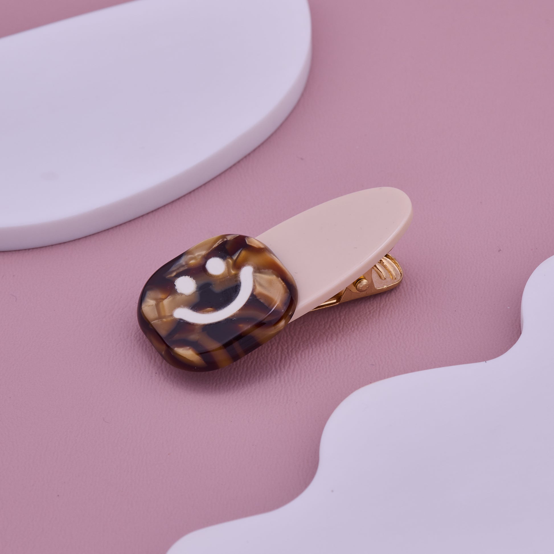 Add some cheerful vibes to your look with this cute Smiley Hair Clip featuring a tortoiseshell design. Perfect for everyday wear, it keeps hair stylishly in place while spreading positivity and charm.