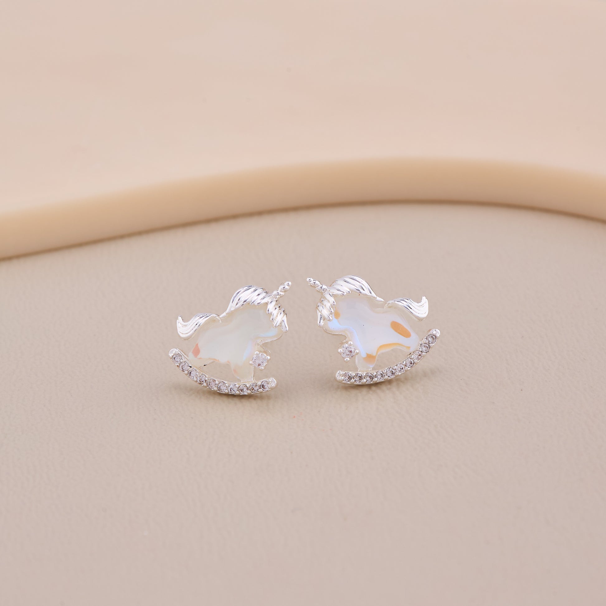 The Earrings feature a distinctive pair adorned with a white accent on the side, showcasing a bold and unique design. Categorized as a fashion accessory, they reflect a contemporary aesthetic and stylish appeal. Displayed indoors against an artistic backdrop, these earrings stand out as a creative and chic addition to any jewelry collection.